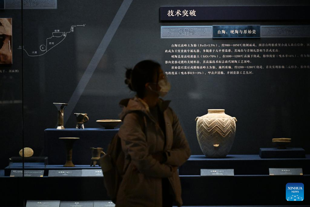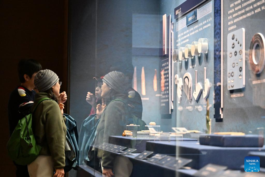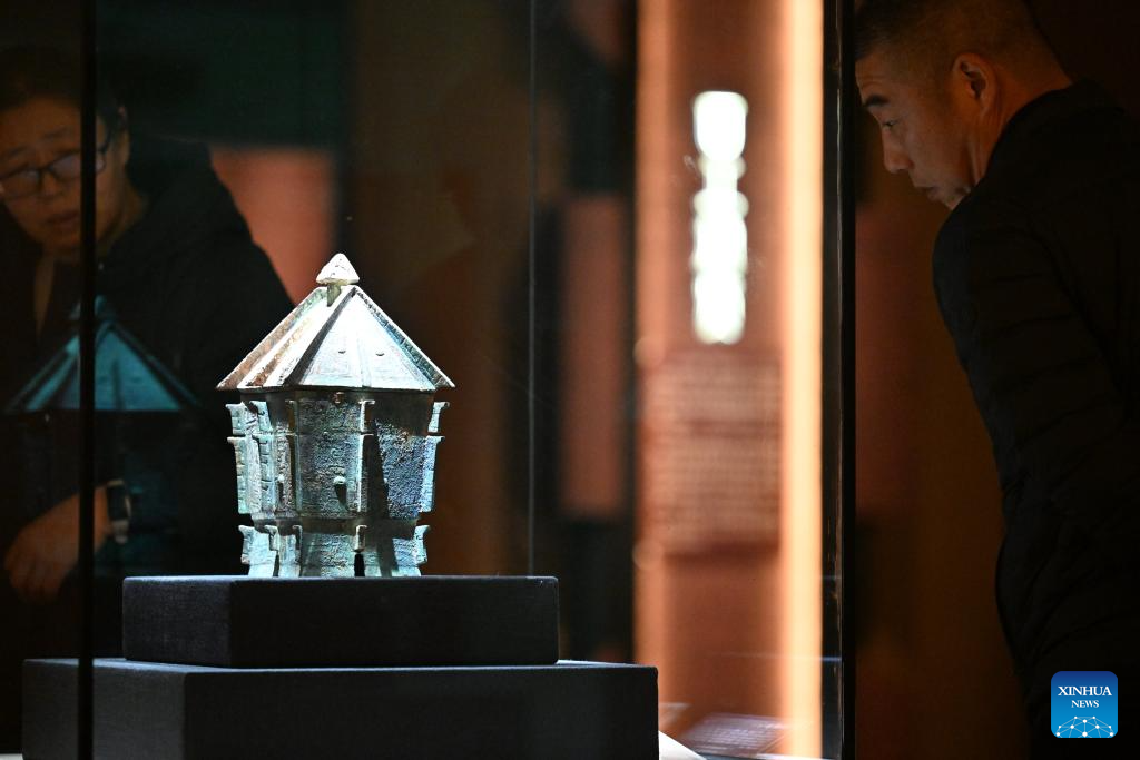A visitor views exhibits at an exhibition on cultural relics from the Shang Dynasty (1600 BC-1046 BC) at the Tianjin Museum in Tianjin, north China, Nov. 29, 2025. The exhibition, featuring more than 180 pieces (sets) of cultural relics from the Shang Dynasty, has received more than 400,000 visitors since its opening on Aug. 23. (Xinhua/Li Ran)
