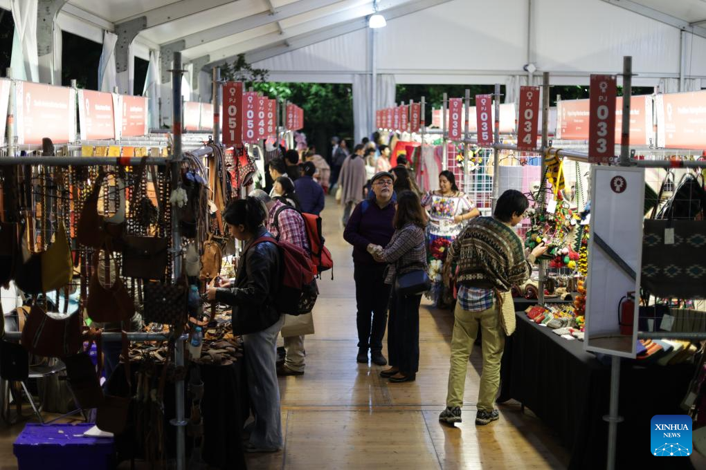People visit an original Mexican textile art fair in Mexico City, Mexico, Nov. 28, 2025. The fair brings together artisans from all across Mexico presenting textiles, jewelry, and other handcrafted items. International artisans from several countries, including China, were also invited. (Photo by Francisco Canedo/Xinhua)