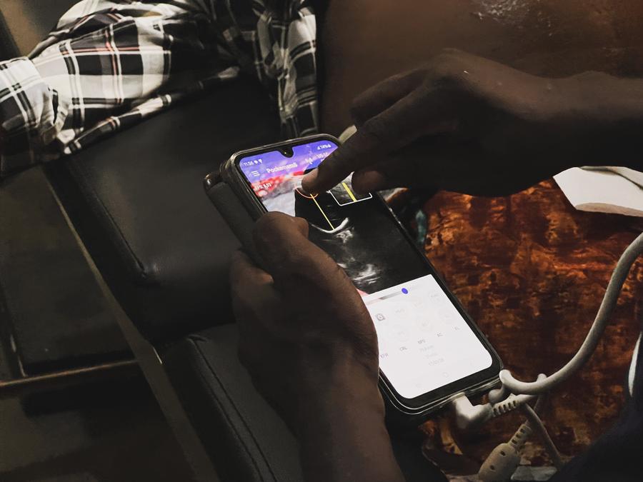 The mobile ultrasound fits in the palm of a hand. A lightweight probe paired with a smartphone provides diagnostic insight once available only in fully equipped hospitals. In a city where roads are cut off, hospitals are overwhelmed, and referrals are often impossible, the device is finally bringing basic prenatal care within reach.