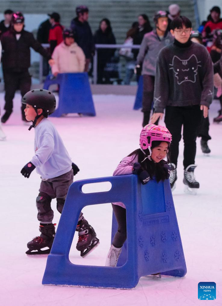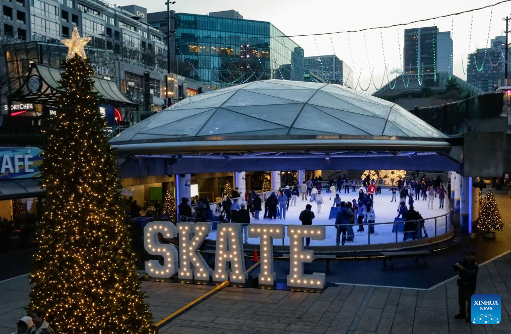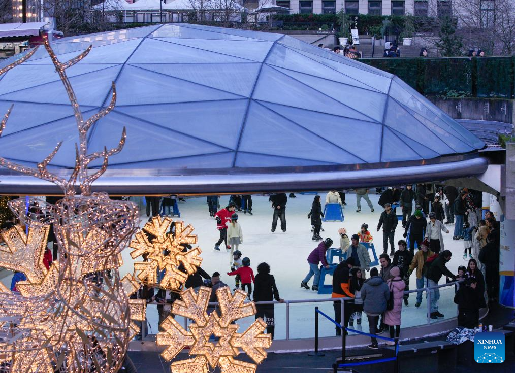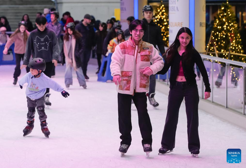 People enjoy ice skating at the Robson Square Ice Rink in Vancouver, British Columbia, Canada, Nov. 30, 2025. (Photo by Liang Sen/Xinhua)