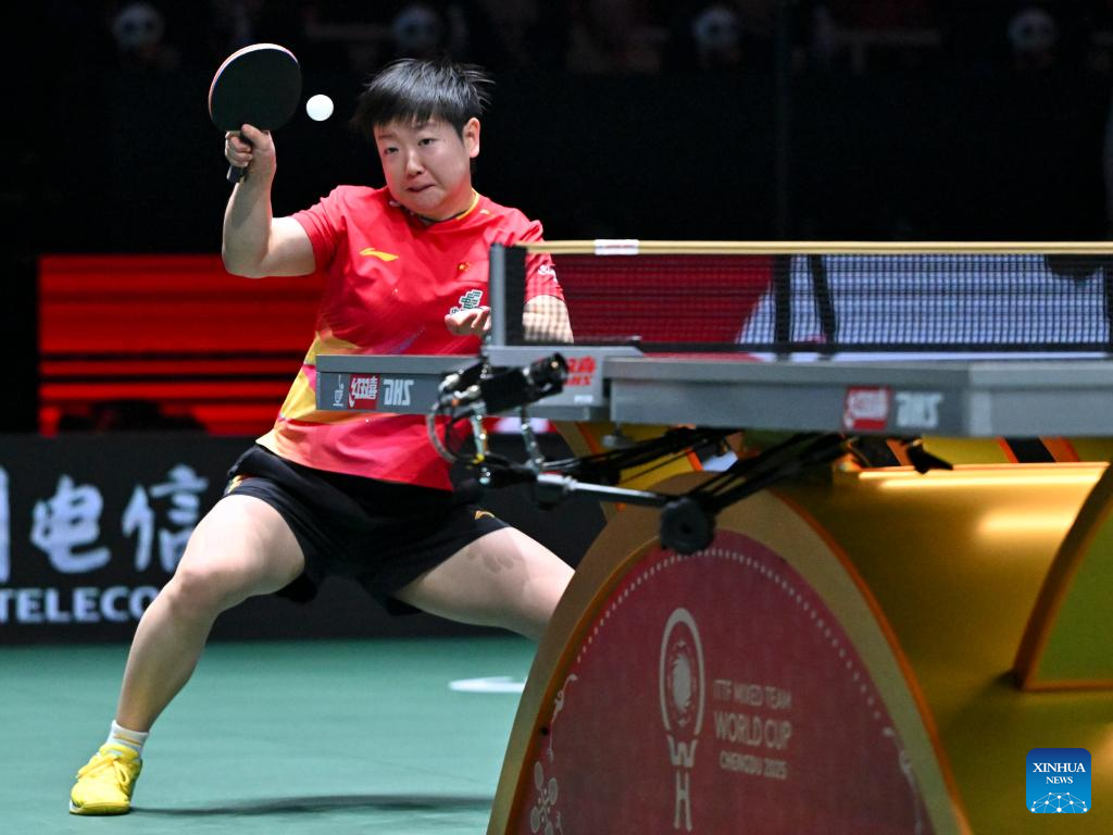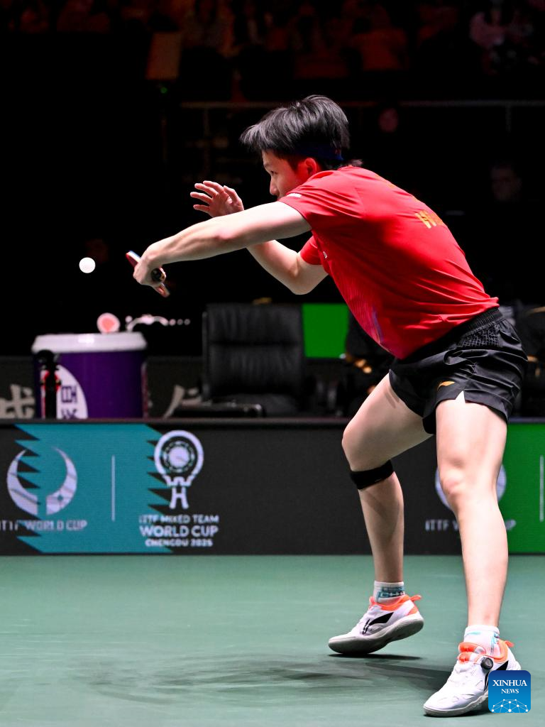 CHENGDU, Dec. 1 (Xinhua) -- China beat Egypt 8-0, while South Korea came back to defeat Chinese Taipei 8-6 at the 2025 International Table Tennis Federation (ITTF) Mixed Team World Cup here on Monday.