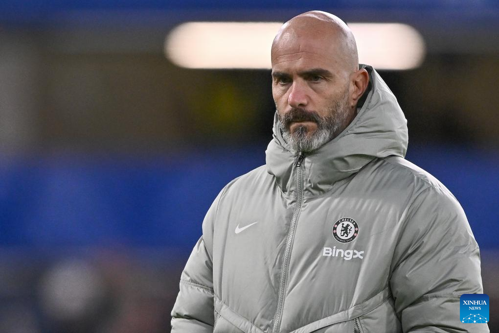 Chelseal's head coach Enzo Maresca reacts before the English Premier League match between Arsenal FC and Chelsea FC in London, Britain, on Nov. 30, 2025. (Xinhua)