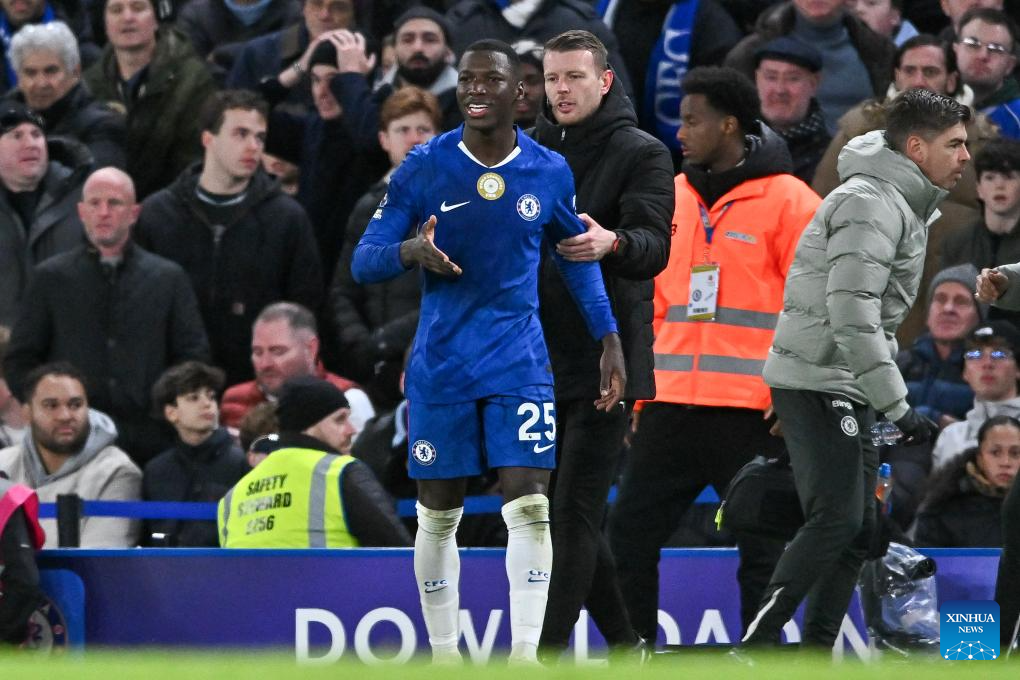 Cole Palmer of Chelsea warms up prior to the English Premier League match between Arsenal FC and Chelsea FC in London, Britain, on Nov. 30, 2025. (Xinhua)