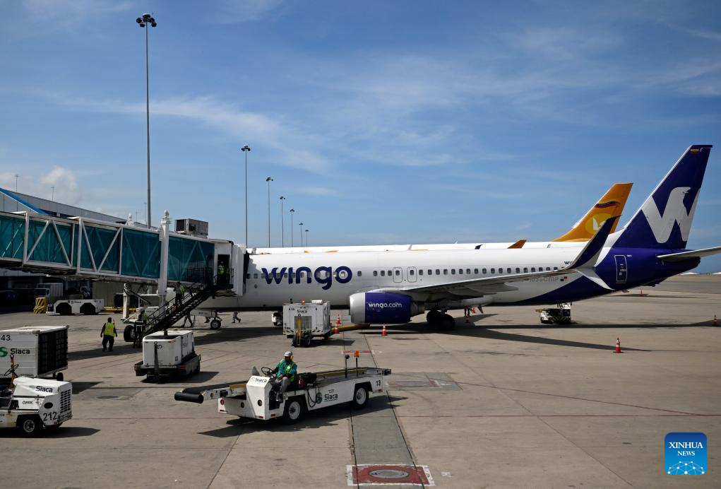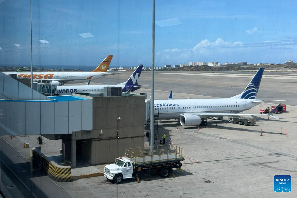 Passenger aircraft are pictured at the Simon Bolivar International Airport in Maiquetia, Venezuela, Dec. 1, 2025. (Xinhua/Li Muzi)
