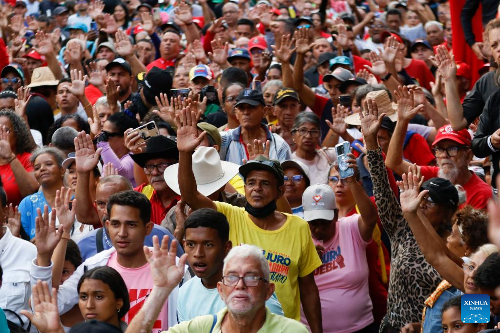 People attend a rally in Caracas, capital of Venezuela, Dec. 1, 2025. (Str/Xinhua)