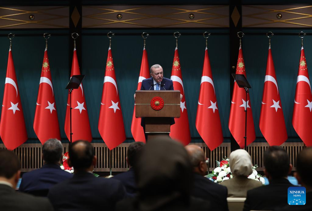 Turkish President Recep Tayyip Erdogan speaks during a press conference at the Presidential Complex in Ankara, Türkiye, Dec. 1, 2025. (Mustafa Kaya/Handout via Xinhua)