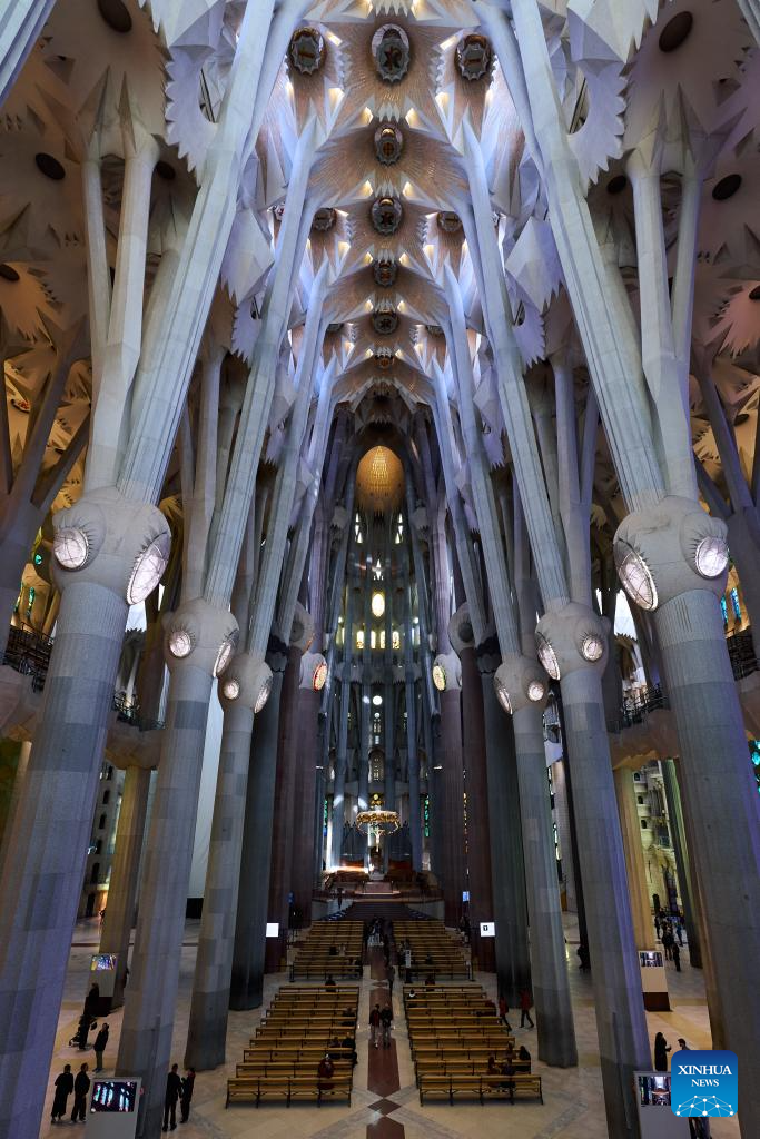 This photo taken on Dec. 1, 2025 shows an interior view of the Sagrada Familia basilica in Barcelona, Spain. Sagrada Familia basilica, a masterpiece of world-renowned designer Antoni Gaudi, is still under construction after the first stone was laid in 1882. (Xinhua/Cheng Min)