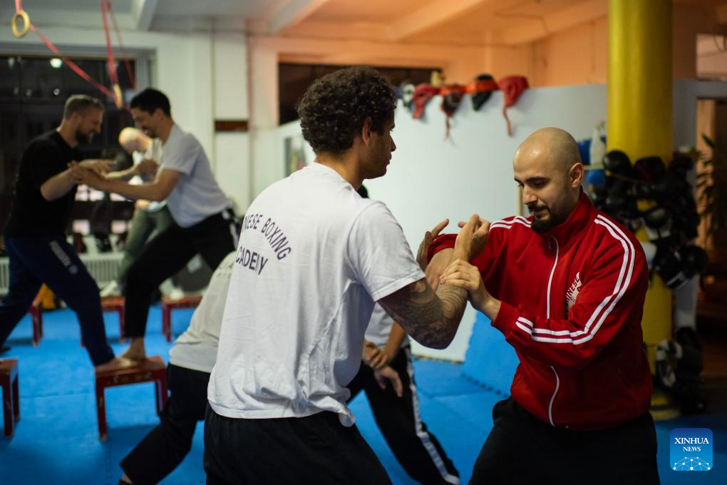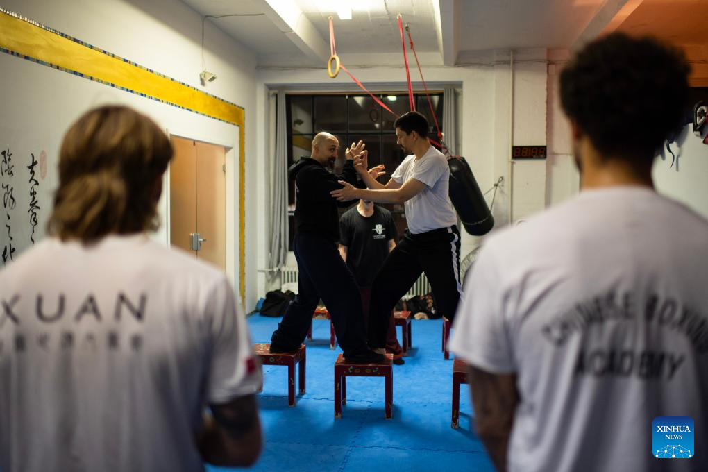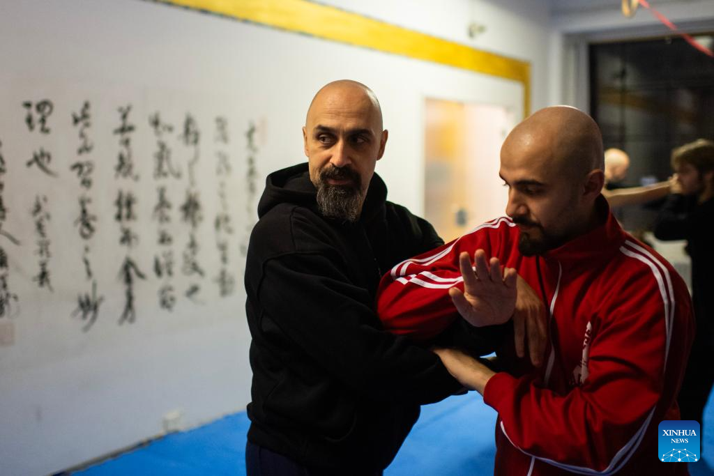 Students practice Tuishou at XUAN-Gong Fu Academy in Berlin, Germany, Nov. 13, 2025. (Xinhua/Zhang Haofu)