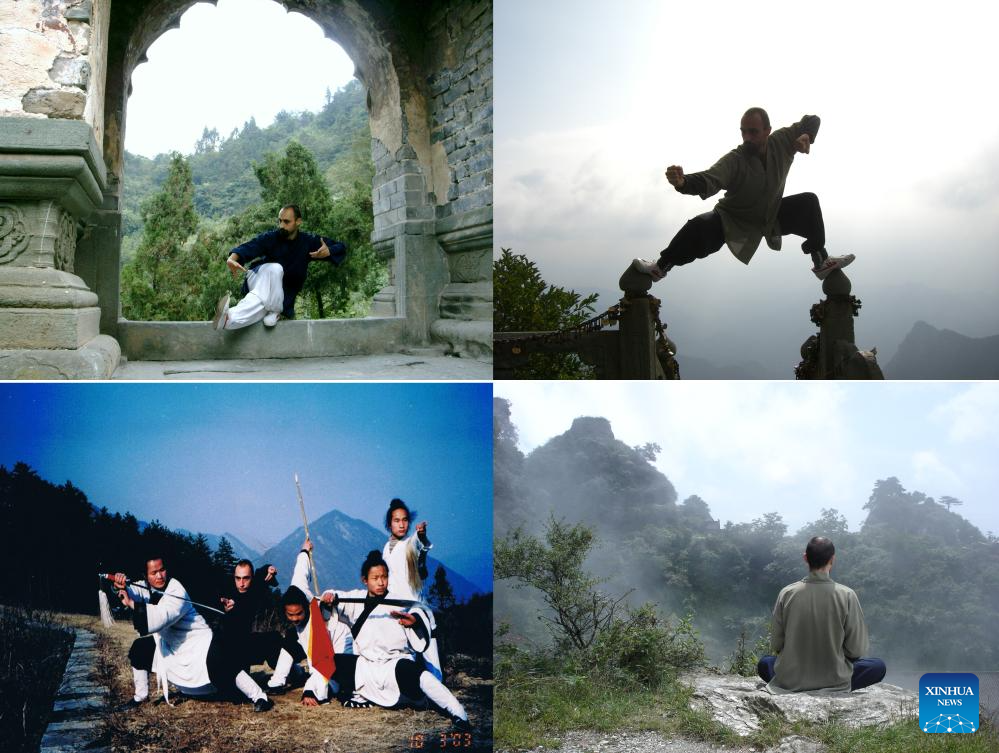 This undated combo photo shows four scenes of Ismet Himmet practicing Chinese martial arts in China. (Xinhua)