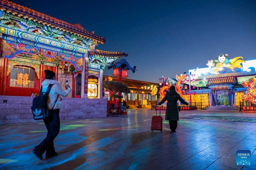 Tourists enjoy themselves at Yangliuqing ancient town in Tianjin, north China, on Dec. 3, 2025. Sitting on the outskirts of the port city of Tianjin, Yangliuqing ancient town is a tourist town that is well-known for its woodblock new year pictures. It is run through by the Grand Canal, the world's longest man-made waterway. (Xinhua/Fu Tian)