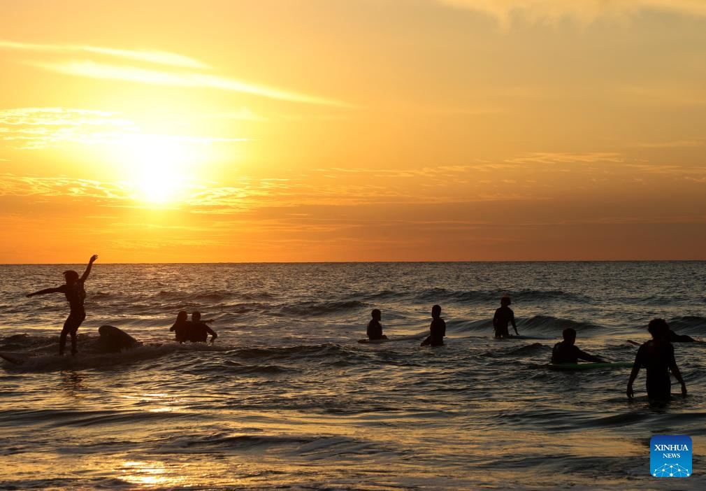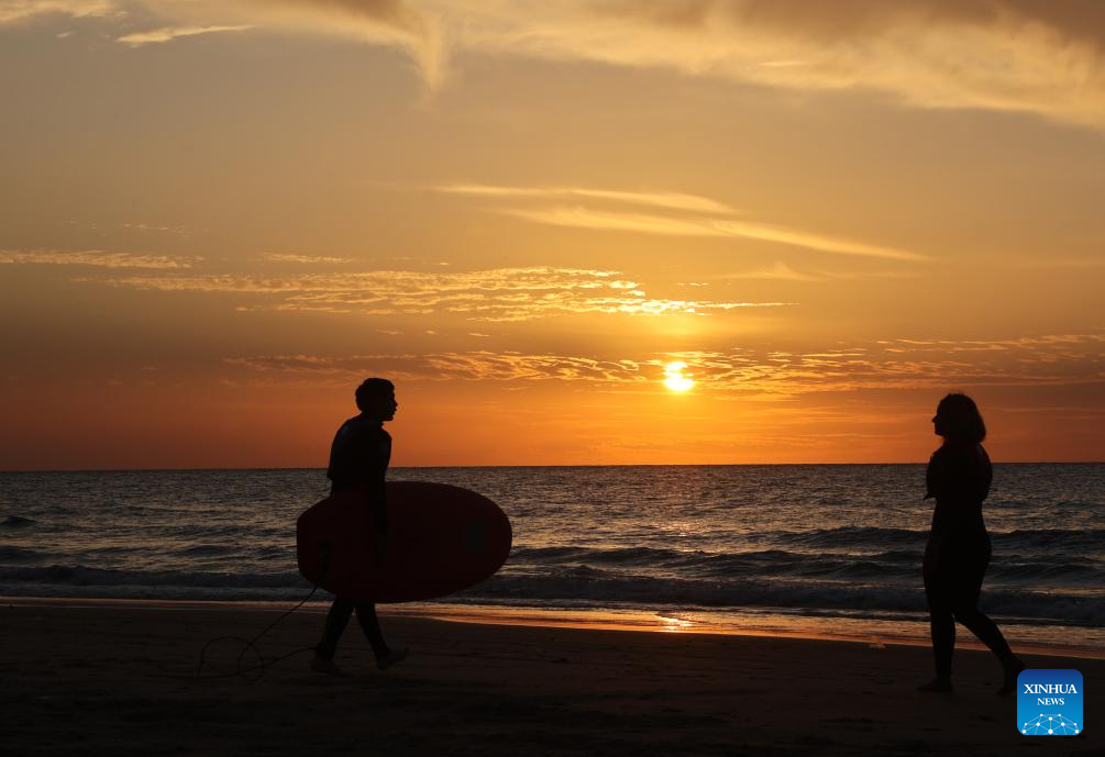 People enjoy leisure time on the beach in Haifa, northern Israel, Dec. 3, 2025. (Photo by Gil Cohen Magen/Xinhua)