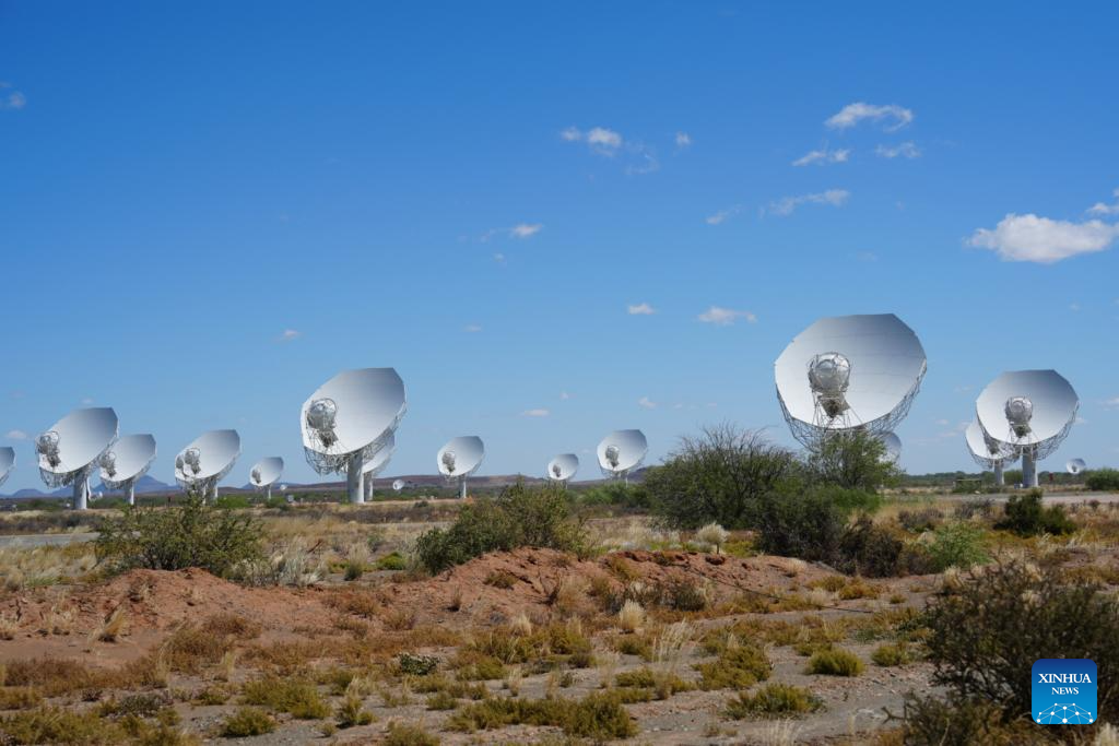 This photo taken on Sept. 24, 2025 shows the antenna array of MeerKAT radio telescope in Carnarvon, Northern Cape Province of South Africa. (Xinhua/Wang Lei)