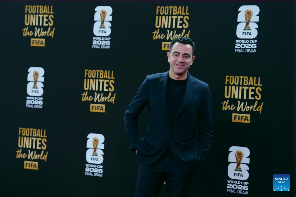 Spanish former football player Xavi Hernandez arrives for the welcome reception ahead of the final draw for the 2026 FIFA World Cup at John F. Kennedy Center for the Performing Arts in Washington, D.C., the United States, on Dec. 4, 2025. (Xinhua/Jia Haocheng)