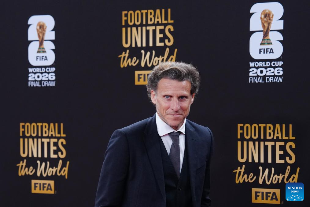 Uruguay's former football player Diego Forlan arrives for the welcome reception ahead of the final draw for the 2026 FIFA World Cup at John F. Kennedy Center for the Performing Arts in Washington, D.C., the United States, on Dec. 4, 2025. (Xinhua/Jia Haocheng)