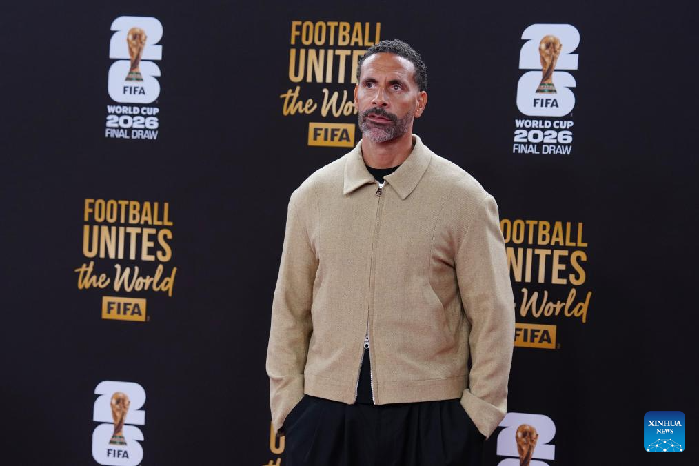 English former football player Rio Ferdinand arrives for the welcome reception ahead of the final draw for the 2026 FIFA World Cup at John F. Kennedy Center for the Performing Arts in Washington, D.C., the United States, on Dec. 4, 2025. (Xinhua/Jia Haocheng)