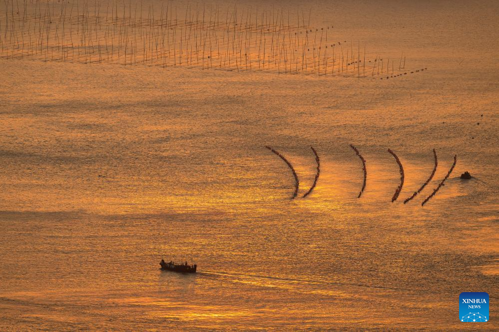 This photo shows the scenery of the sea at sunrise in Huazhu Village, Sansha Town, Xiapu County, southeast China's Fujian Province, Dec. 4, 2025. (Xinhua/Wei Peiquan)