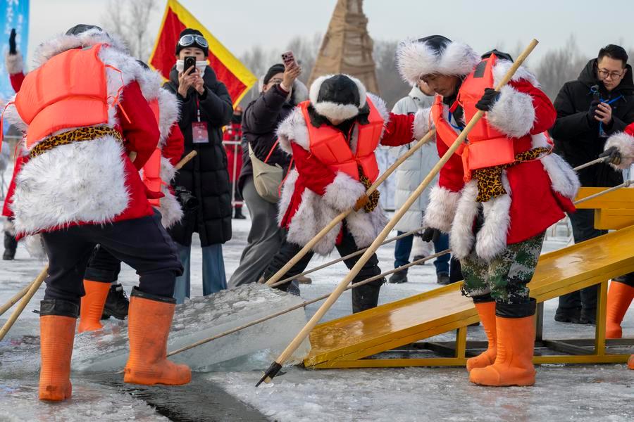 HARBIN, Dec. 7 (Xinhua) -- On a frozen stretch of the Songhua River, China's "ice city" Harbin opened its annual ice-harvesting festival on Sunday, signaling the start of a bustling winter tourism season for the northeastern city.