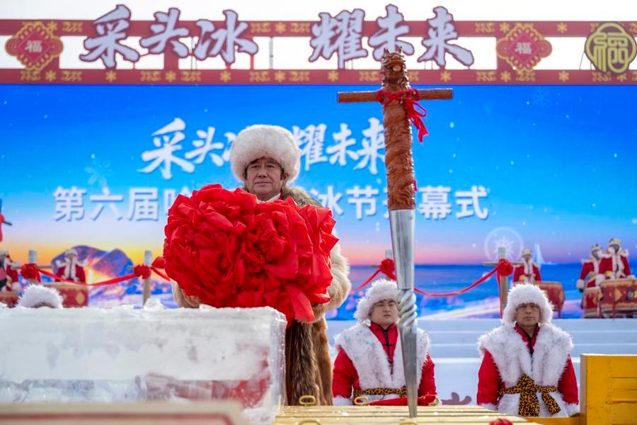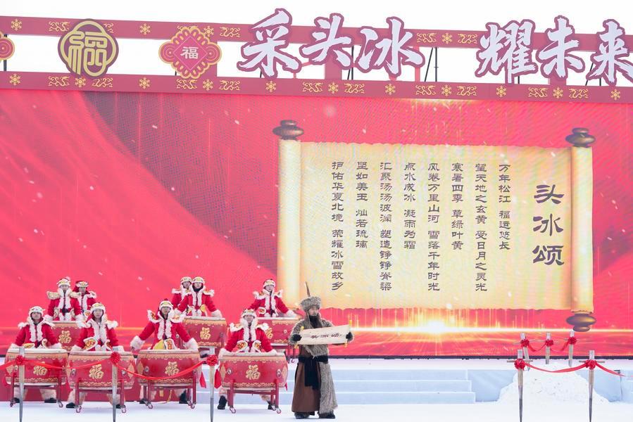 HARBIN, Dec. 7 (Xinhua) -- Marking the beginning of Harbin's ice collecting season, the sixth ice collecting festival kicked off here by the Songhua River on Sunday, attracting lots of people with ice collecting ceremony and folk custom experience activities.