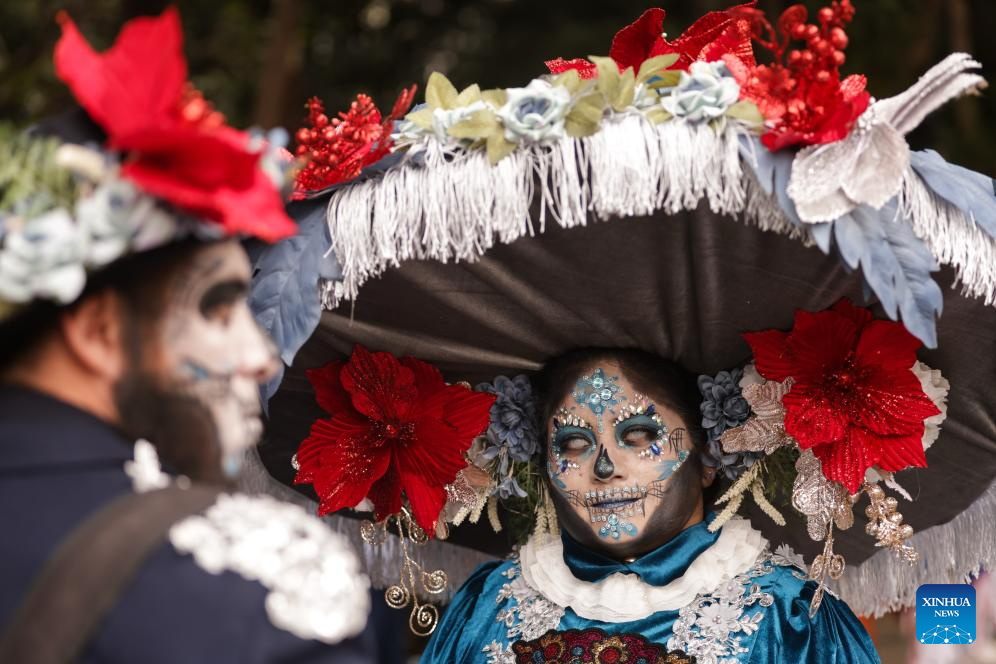 Costumed performers are pictured during the Villa-Zapata carnival in Mexico City, Mexico, on Dec. 6, 2025. The 11th Villa-Zapata carnival was hosted in Mexico City on Saturday. Folkloric dances, traditional music, and street processions were seen along the Paseo de la Reforma avenue during the event, promoting traditional Mexican culture while paying tribute to revolutionary leaders Emiliano Zapata and Francisco Villa in the Mexican Revolution of 1910-1920. (Xinhua/Li Mengxin)