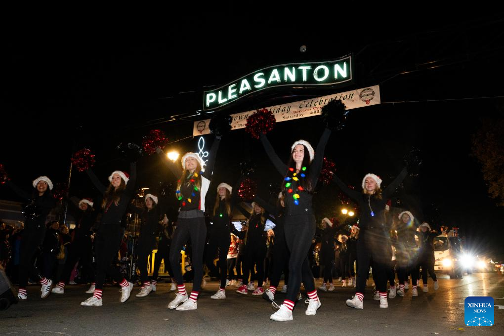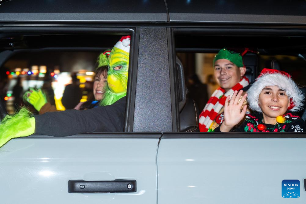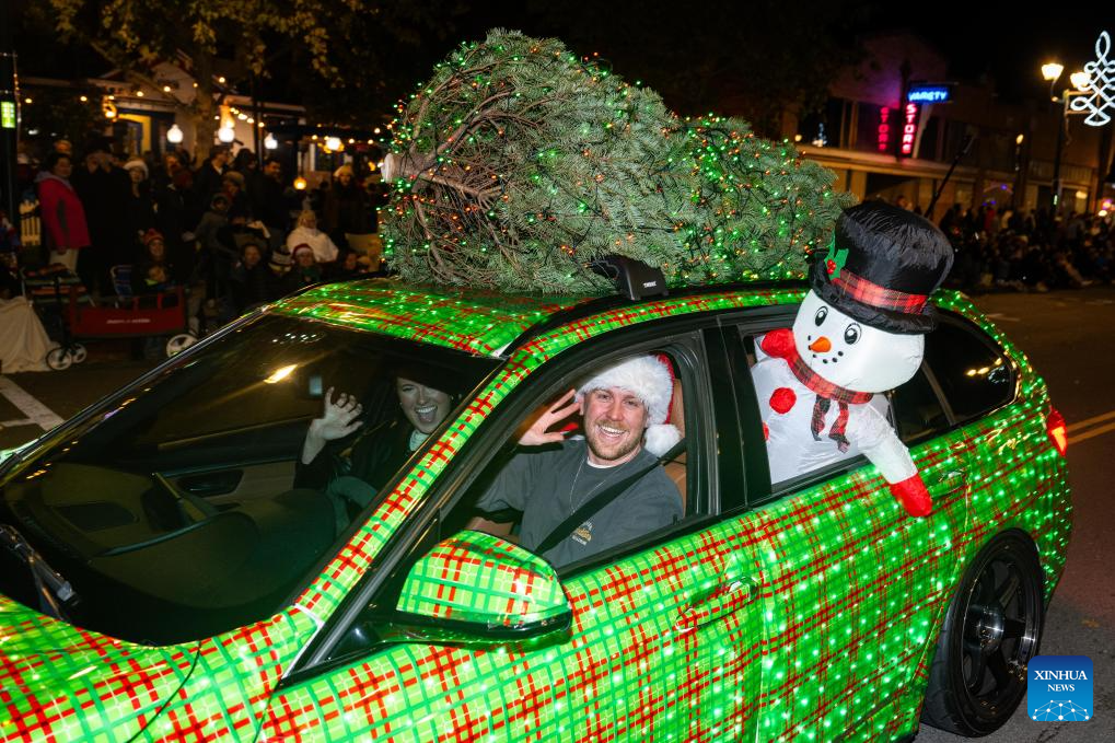 People participate in a Christmas parade in Pleasanton, California, the United States, Dec. 6, 2025. (Photo by Ziyu Julian Zhu/Xinhua)