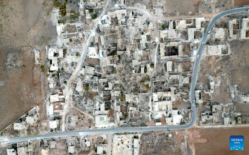This aerial drone photo taken on Dec. 4, 2025 shows damaged houses in Ain Daqneh, in the northern countryside of Aleppo, Syria. (Xinhua)