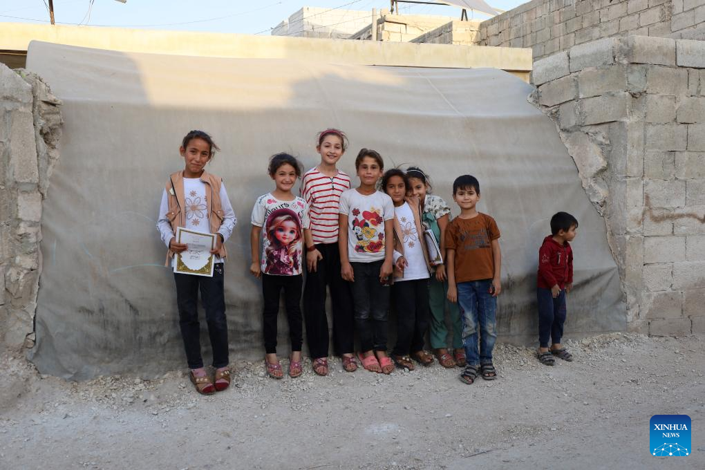 Children are seen at Karama refugee camp in Idlib, Syria, Sept. 25, 2025. (Xinhua)