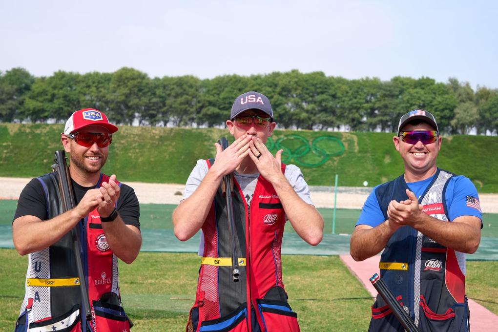 In the men's skeet, Christian Elliott also cleared all 36 targets to lead an all-American podium, joined by four-time Olympic gold medalist Vincent Hancock with 35 hits and Dustan Taylor with 31.