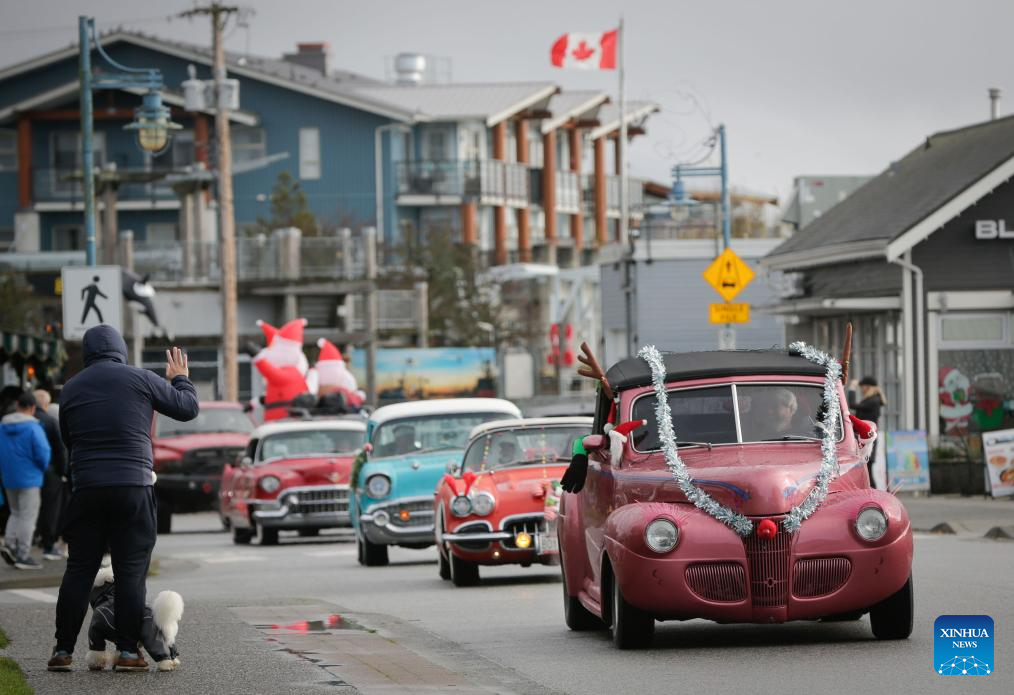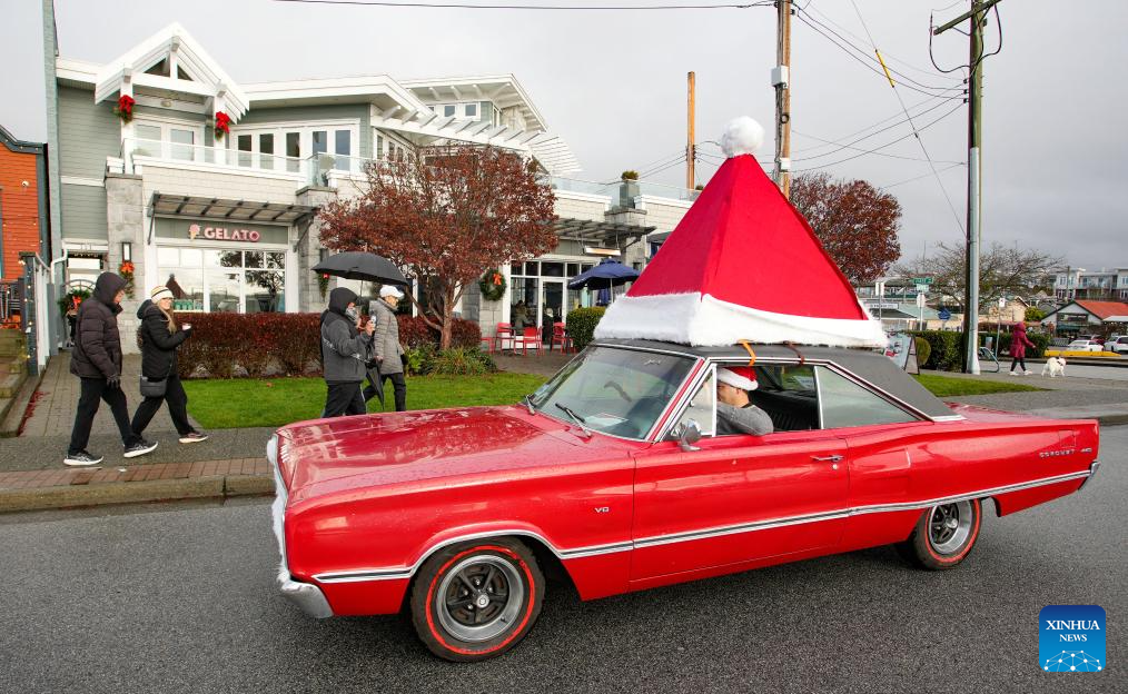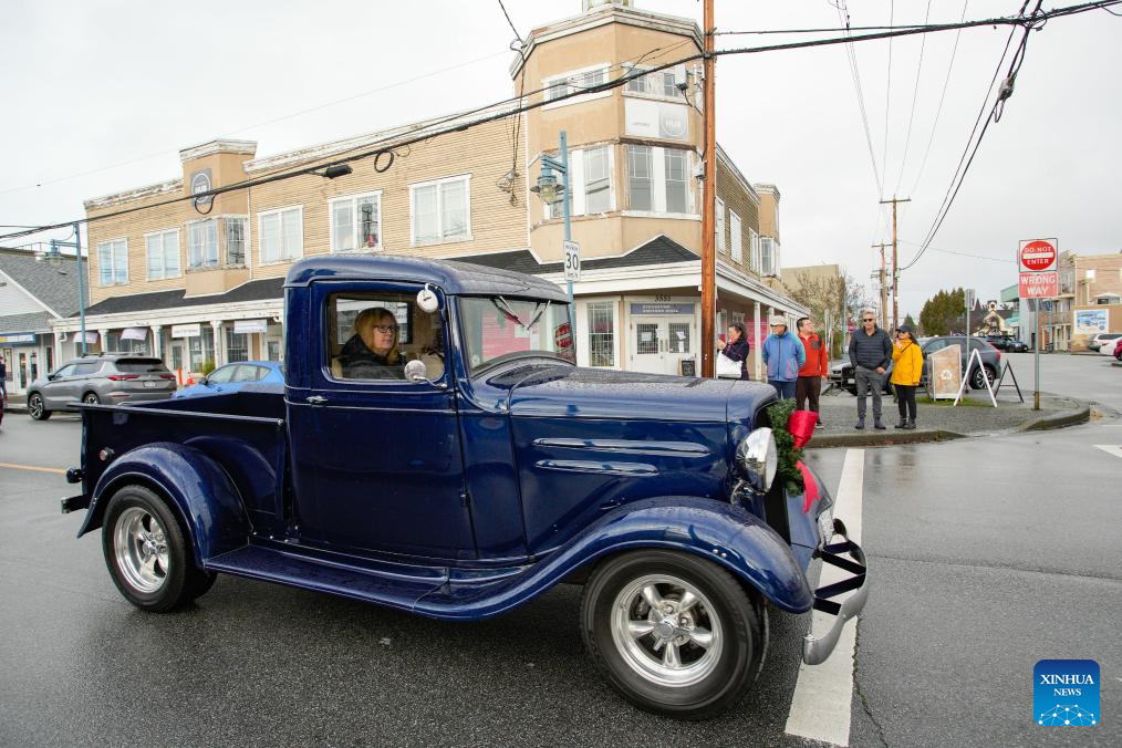 The annual event was held here on Sunday, featuring dozens of classic vehicles with Christmas decorations parading through the communities and collecting toys for charity. (Photo by Liang Sen/Xinhua)