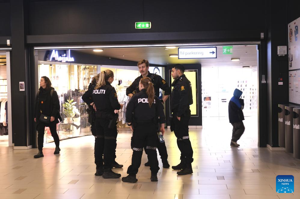 The shooting occurred at Storo Storsenter, one of Oslo's largest shopping malls. According to the police, the suspect entered the building and fired a single shot from a shotgun into the ceiling. (Photo by Chen Yaqin/Xinhua)
