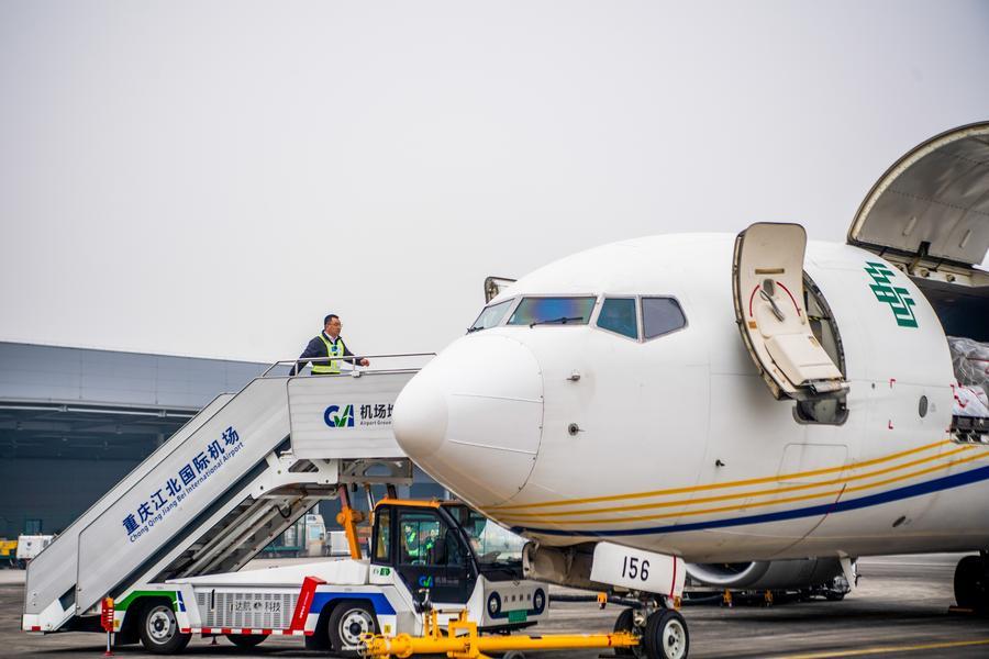 CHONGQING, Dec. 9 (Xinhua) -- An international cargo route linking southwest China's Chongqing Municipality and Yangon in Myanmar successfully made its inaugural flight on Tuesday. As the 35th international route operated by China Postal Airlines, the route is expected to inject new momentum into economic and trade cooperation between the two countries under the Belt and Road Initiative and the development of Chongqing's international air logistics hub.