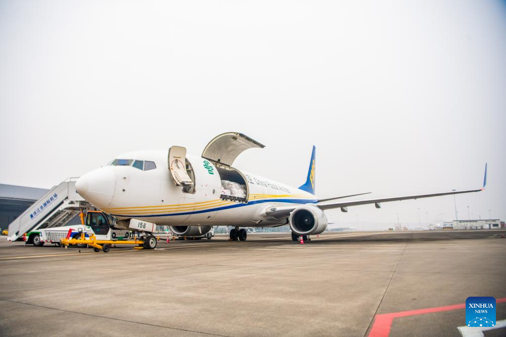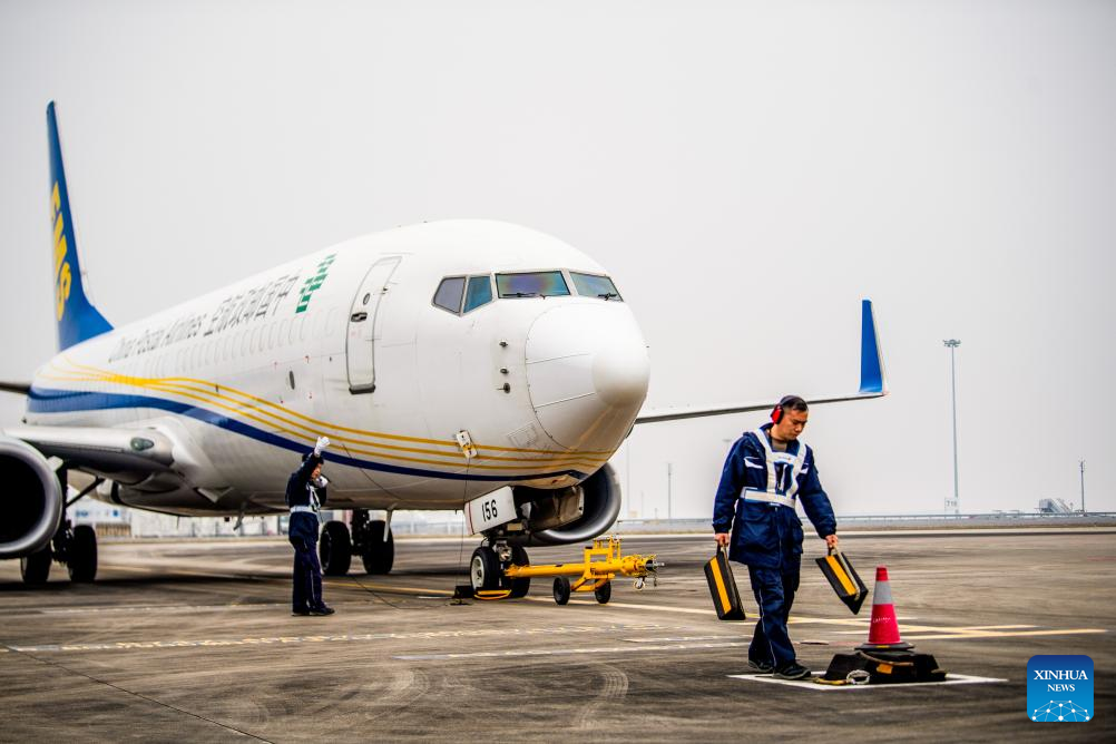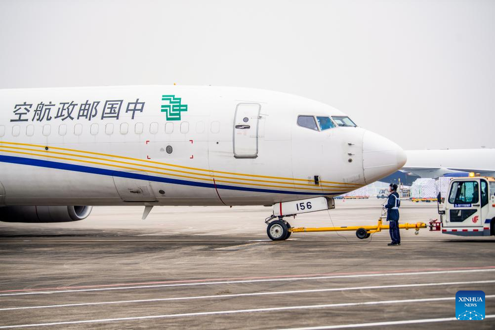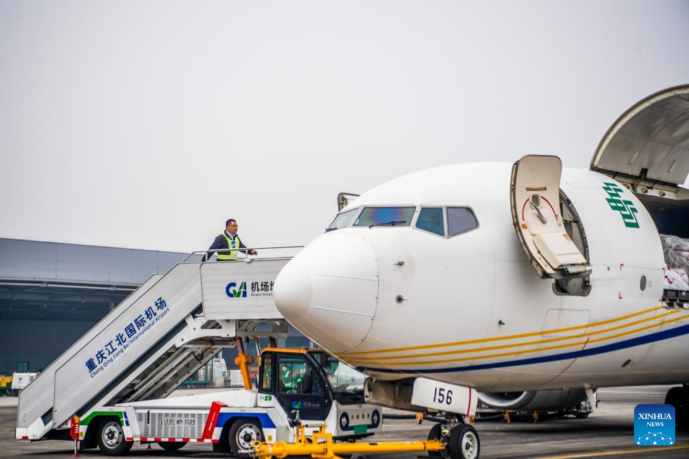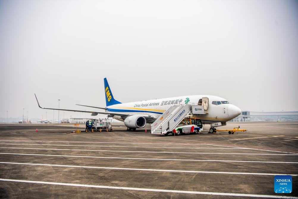 As the 35th international route operated by China Postal Airlines, the route is expected to inject new momentum into economic and trade cooperation between the two countries under the Belt and Road Initiative and the development of Chongqing's international air logistics hub. (Xinhua/Tang Yi)