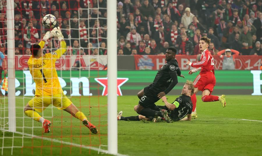 BERLIN, Dec. 10 (Xinhua) -- Bayern Munich teenager Lennart Karl drew a standing ovation in the 76th minute on Tuesday after scoring in a 3-1 UEFA Champions League win over Sporting, becoming the youngest player to score in three consecutive games and prompting talk of a possible 2026 FIFA World Cup call-up.