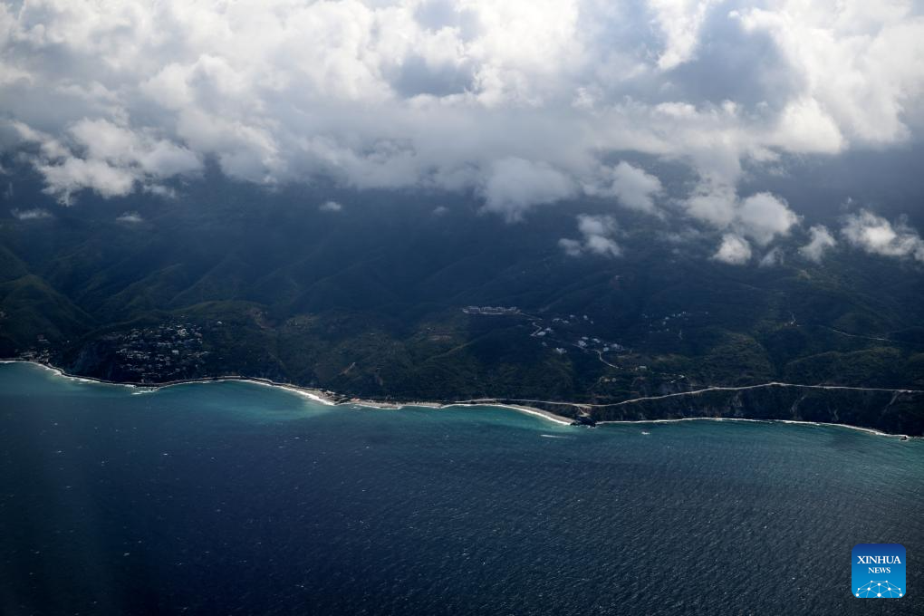 Photo taken from an airplane on Dec. 1, 2025, shows the coastline of Venezuela. (Xinhua/Li Muzi)