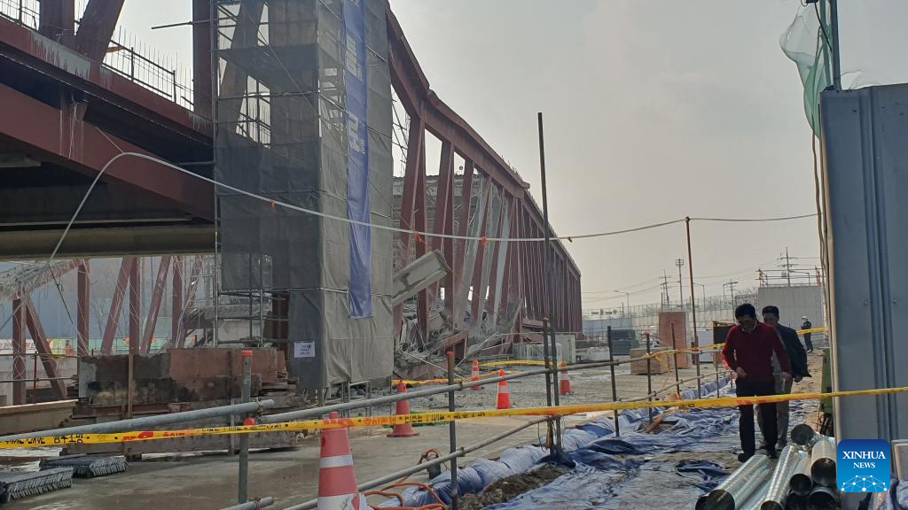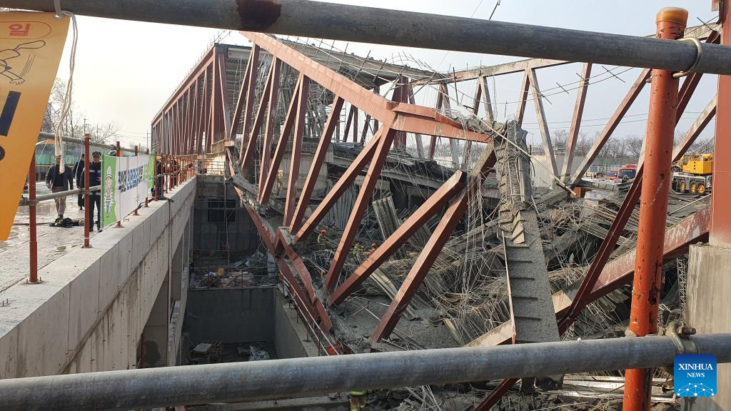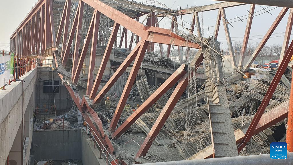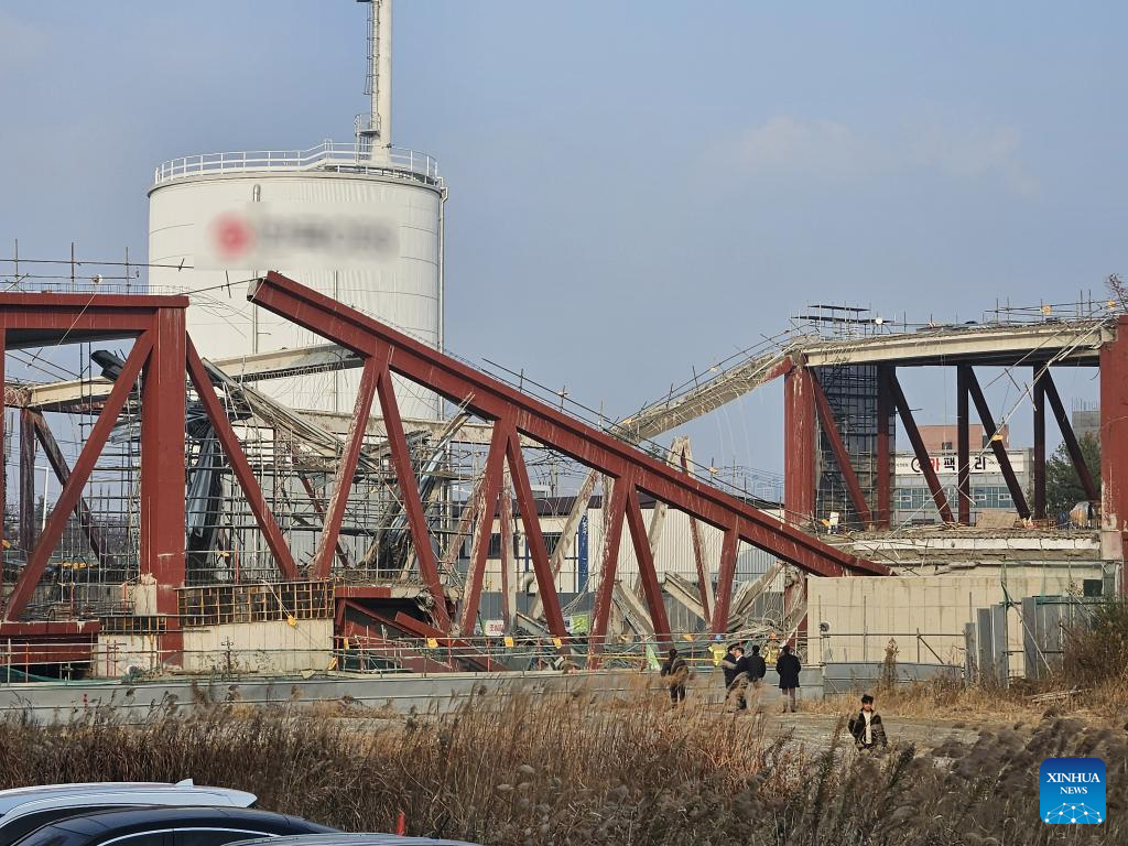 SEOUL, Dec. 11 (Xinhua) -- Two workers were trapped after a steel structure collapsed at a library construction site in Gwangju, South Korea, Yonhap news agency reported on Thursday.