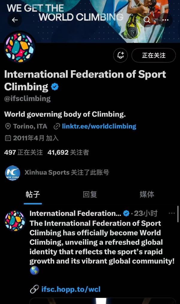 World Climbing serves as the international governing body for competition climbing within the Olympic movement and counts 102 member organizations, including the Chinese Mountaineering Association.