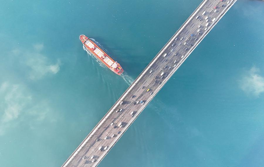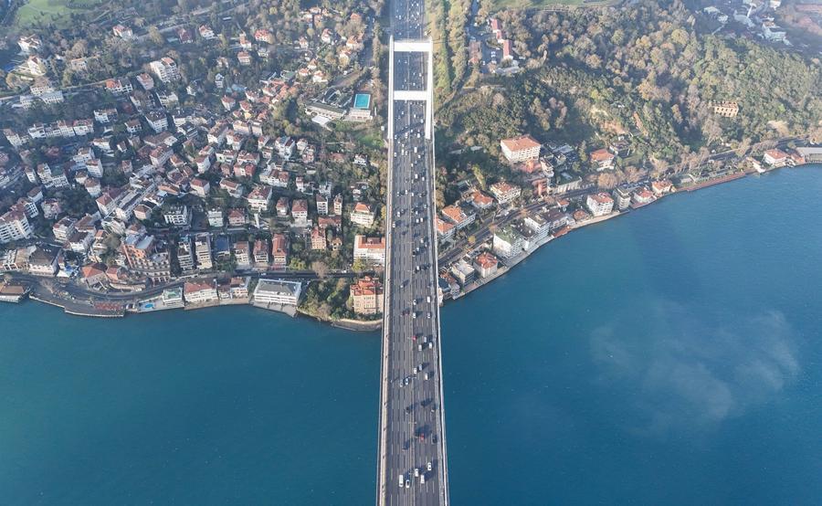 ISTANBUL, Dec. 11 (Xinhua) -- A drone's-eye view of the Bosphorus shows a strip of water gleaming in the soft light of a winter morning. This famous waterway connects the Black Sea to the Sea of Marmara and acts as a major divide between Asia and Europe. For most of its path, it flows by the hills and mosque towers of Istanbul, a city that has held it close for thousands of years.