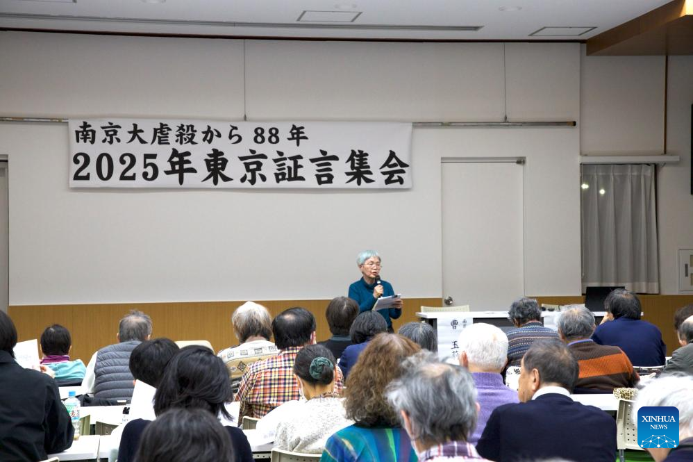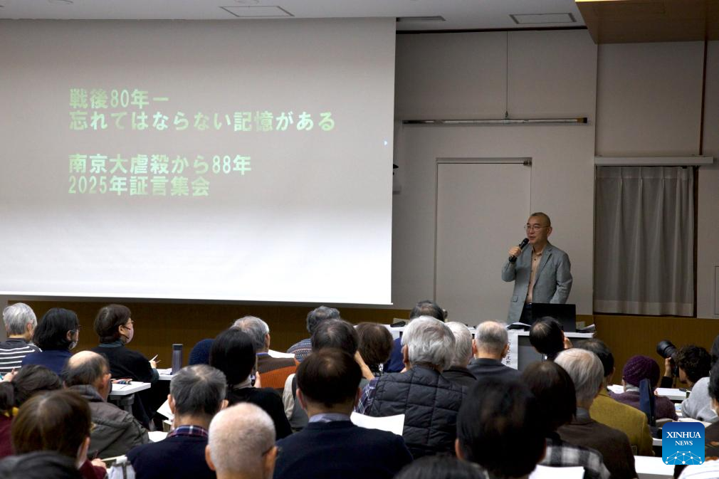 The testimony meeting is organized by the Japanese civic group "No More Nanjing," which has held public testimony events on the Nanjing Massacre around Dec. 13 in Tokyo and other cities for 29 years, giving Nanjing Massacre survivors, their descendants and scholars a platform to tell their stories and to push Japanese society to confront its history of aggression with honesty.