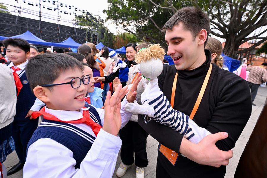 Children attending the Quanzhou International Puppet Festival prepare for a puppet show in Quanzhou, southeast China's Fujian Province, Dec. 12, 2025. (Xinhua/Jiang Kehong)A Russian performer attending the Quanzhou International Puppet Festival interacts with a boy in Quanzhou, southeast China's Fujian Province, Dec. 12, 2025. (Xinhua/Jiang Kehong)Chinese puppeteers perform during the Quanzhou International Puppet Festival in Quanzhou, southeast China's Fujian Province, Dec. 12, 2025. (Xinhua/Jiang Kehong)Russian youth attending the Quanzhou International Puppet Festival pose for a group photo with a Chinese performer in Quanzhou, southeast China's Fujian Province, Dec. 12, 2025. (Xinhua/Jiang Kehong)Foreign puppeteers perform during the Quanzhou International Puppet Festival in Quanzhou, southeast China's Fujian Province, Dec. 12, 2025. (Xinhua/Jiang Kehong)■