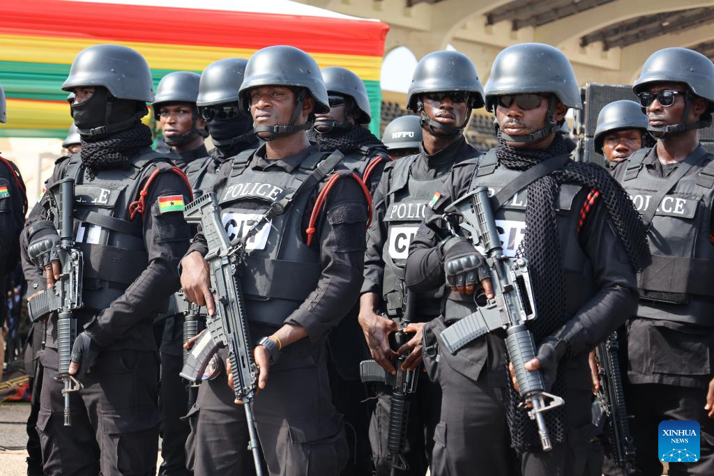 Police officers participate in a joint exercise launched by Ghanaian security services in Accra, Ghana, Dec. 11, 2025. Ghanaian security services launched a joint exercise on Thursday to showcase their preparedness to maintain peace and security in the country.