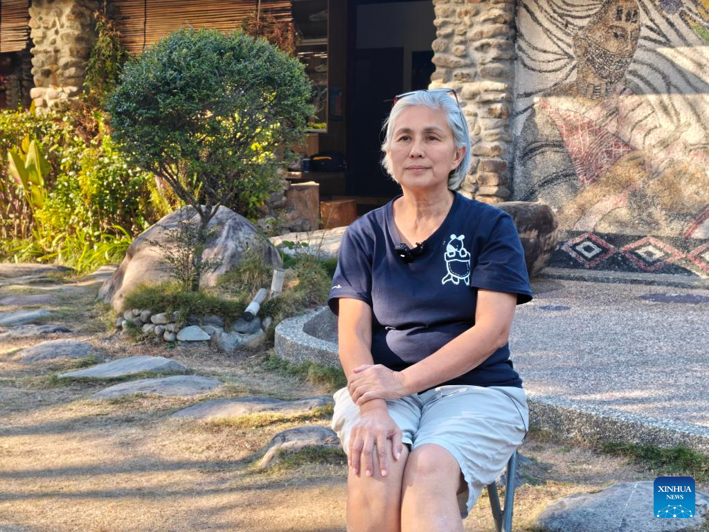 This photo taken with a mobile phone shows Mahung Pawan speaking in an interview with Xinhua in Nantou County, southeast China's Taiwan, Dec. 8, 2025. (Xinhua/Wang Chenghao)