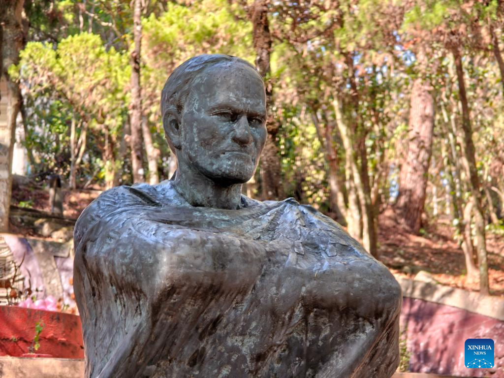 This photo taken with a mobile phone on Dec. 8, 2025 shows a statue of Mona Rudao in a memorial park in Nantou County, southeast China's Taiwan. (Xinhua/Wang Chenghao)