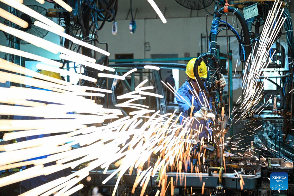 An employee conducts welding operation in a workshop in Haikou National Hi-tech Industrial Development Park in south China's Hainan Province, Nov. 14, 2025. China's Hainan Free Trade Port (FTP) is preparing for island-wide special customs operations, a major milestone in the opening-up drive of the world's second-largest economy despite rising protectionism worldwide.