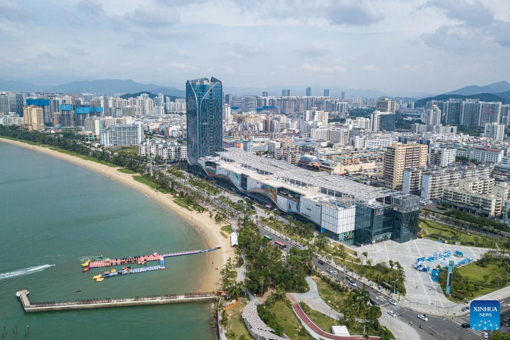 An aerial drone photo taken on Nov. 1, 2025 shows a view of the Sanya Central Business District in south China's Hainan Province. China's Hainan Free Trade Port (FTP) is preparing for island-wide special customs operations, a major milestone in the opening-up drive of the world's second-largest economy despite rising protectionism worldwide.