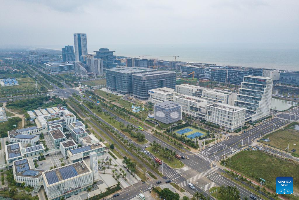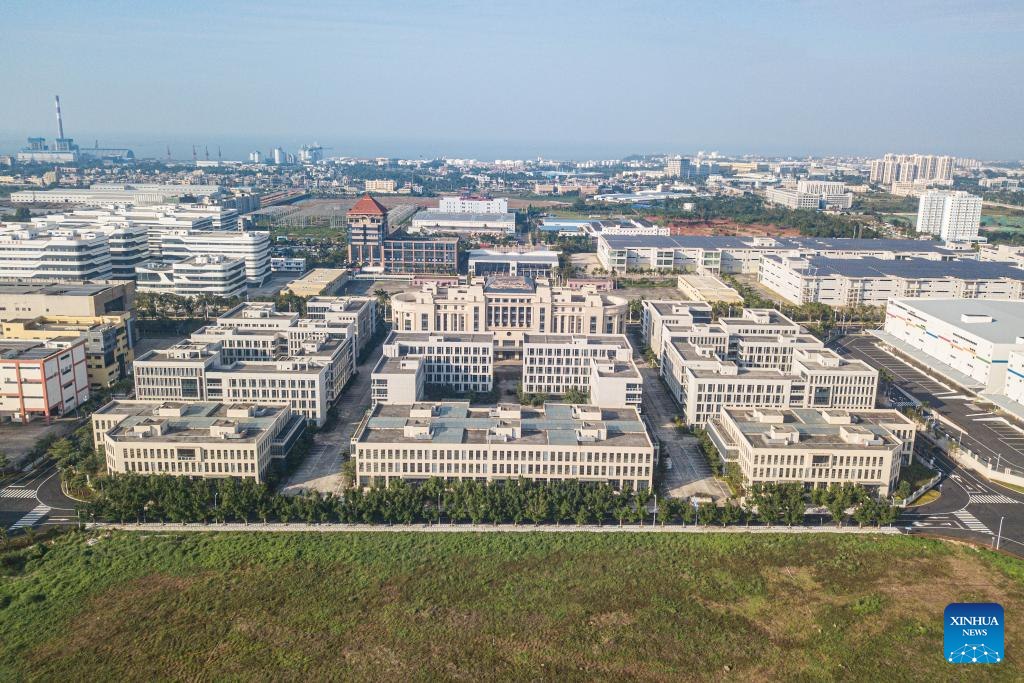 An aerial drone photo taken on Nov. 23, 2025 shows a view of the Hainan Free Trade Port Resort Software Community in south China's Hainan Province. China's Hainan Free Trade Port (FTP) is preparing for island-wide special customs operations, a major milestone in the opening-up drive of the world's second-largest economy despite rising protectionism worldwide.