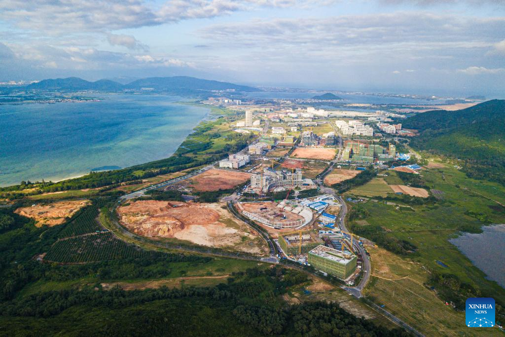 An aerial drone photo taken on Nov. 5, 2025 shows a view of the Lingshui Li'an International Education Innovation Pilot Zone in south China's Hainan Province. China's Hainan Free Trade Port (FTP) is preparing for island-wide special customs operations, a major milestone in the opening-up drive of the world's second-largest economy despite rising protectionism worldwide.