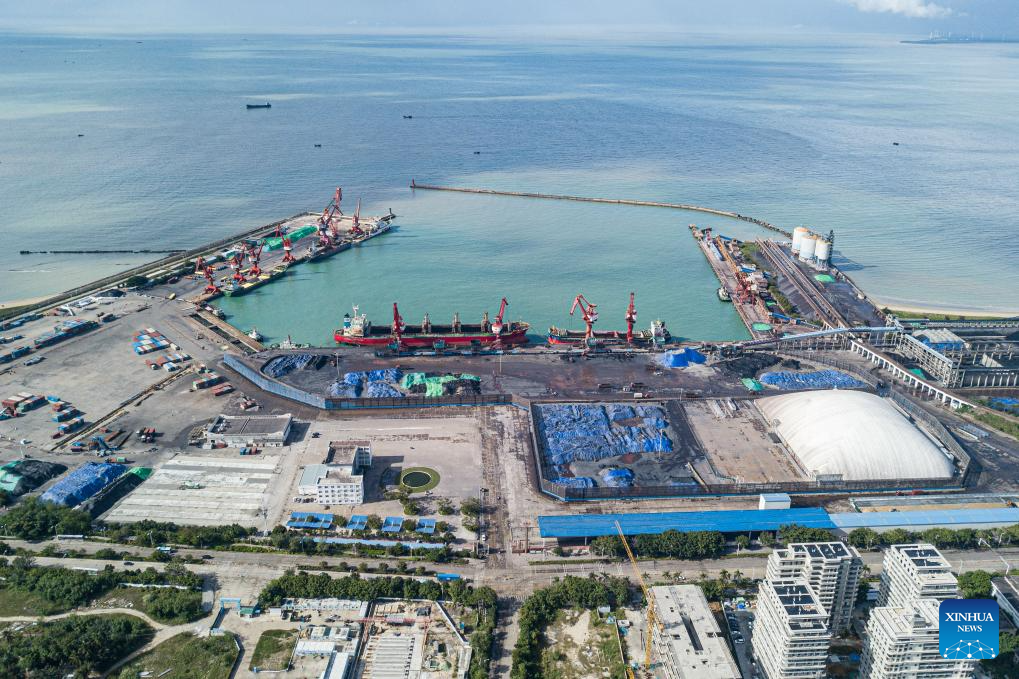 An aerial drone photo taken on Nov. 22, 2025 shows a view of the Lingao Jinpai Port Development Zone in south China's Hainan Province. China's Hainan Free Trade Port (FTP) is preparing for island-wide special customs operations, a major milestone in the opening-up drive of the world's second-largest economy despite rising protectionism worldwide.