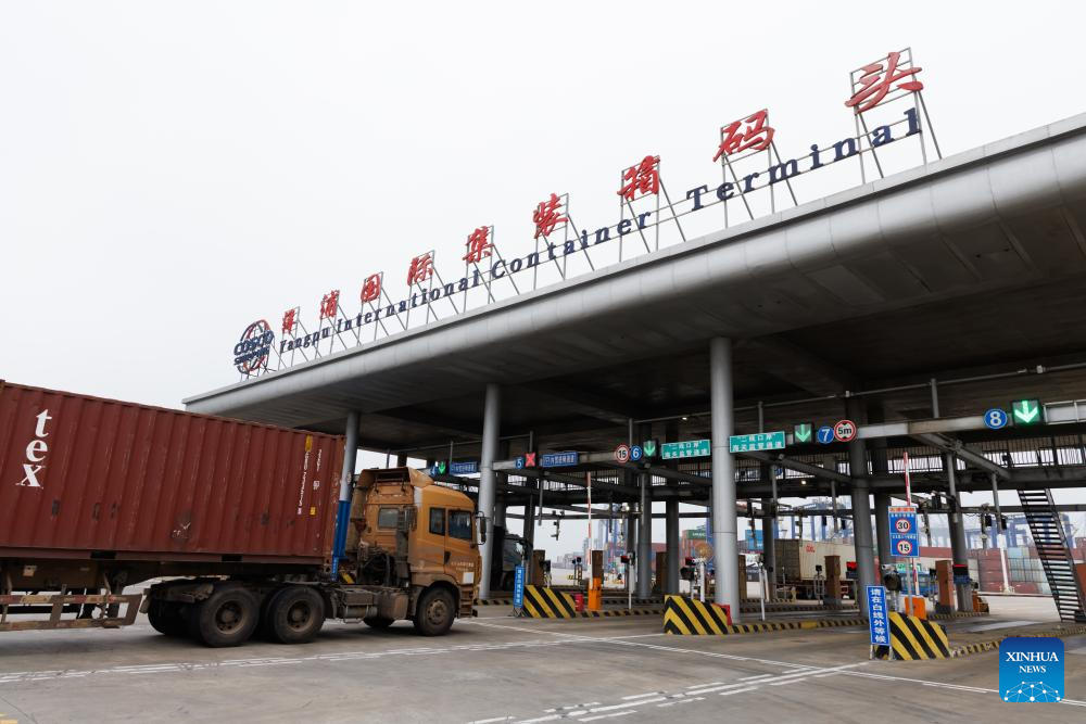 A truck goes through a stress test rehearsal at Yangpu International Container Terminal in Danzhou, south China's Hainan Province, Dec. 11, 2025. The Hainan Free Trade Port is preparing for island-wide special customs operations starting Dec. 18, a major milestone in the opening-up drive of the world's second-largest economy despite rising protectionism worldwide. (Xinhua/Jin Liwang)