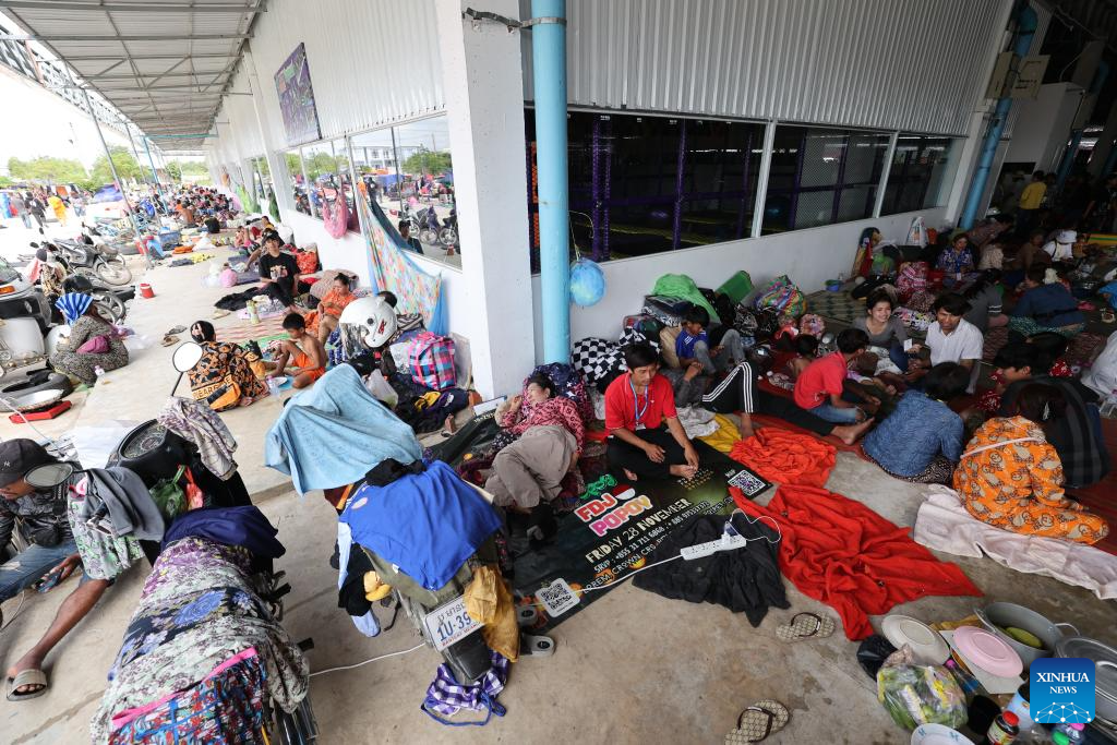 Cambodian evacuees stay at a safe zone in Banteay Meanchey province, Cambodia on Dec. 12, 2025. The number of Cambodian evacuees from the ongoing border fighting with Thailand has risen to more than 300,000 as of Friday afternoon, the Cambodian Ministry of Interior said in a press release. (Photo by Sovannara/Xinhua)