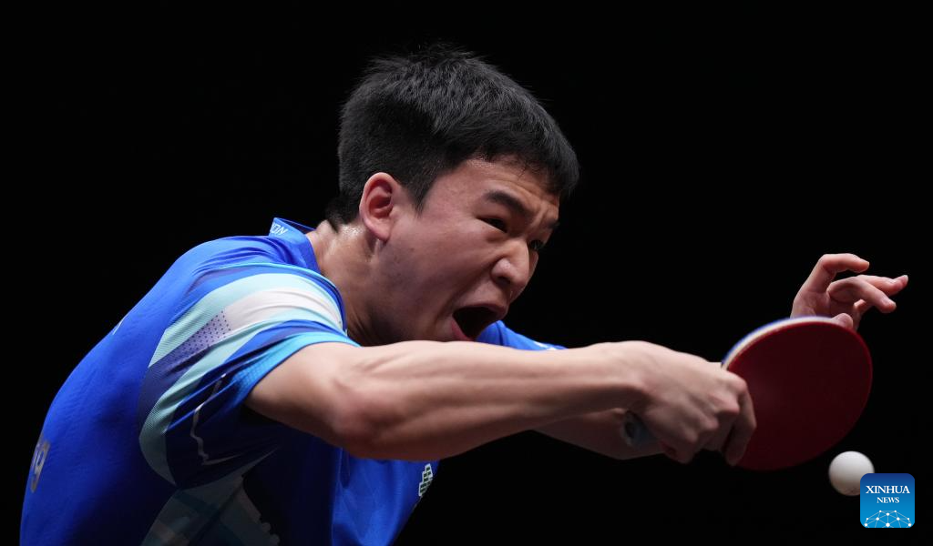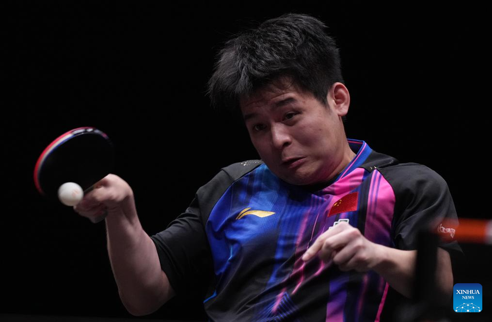 Xiang Peng competes during the men's singles quarterfianl match between Lin Shidong of China and Xiang Peng of China at the WTT Finals Hong Kong 2025 in Hong Kong, south China, Dec. 13, 2025. (Xinhua/Lui Siu Wai)