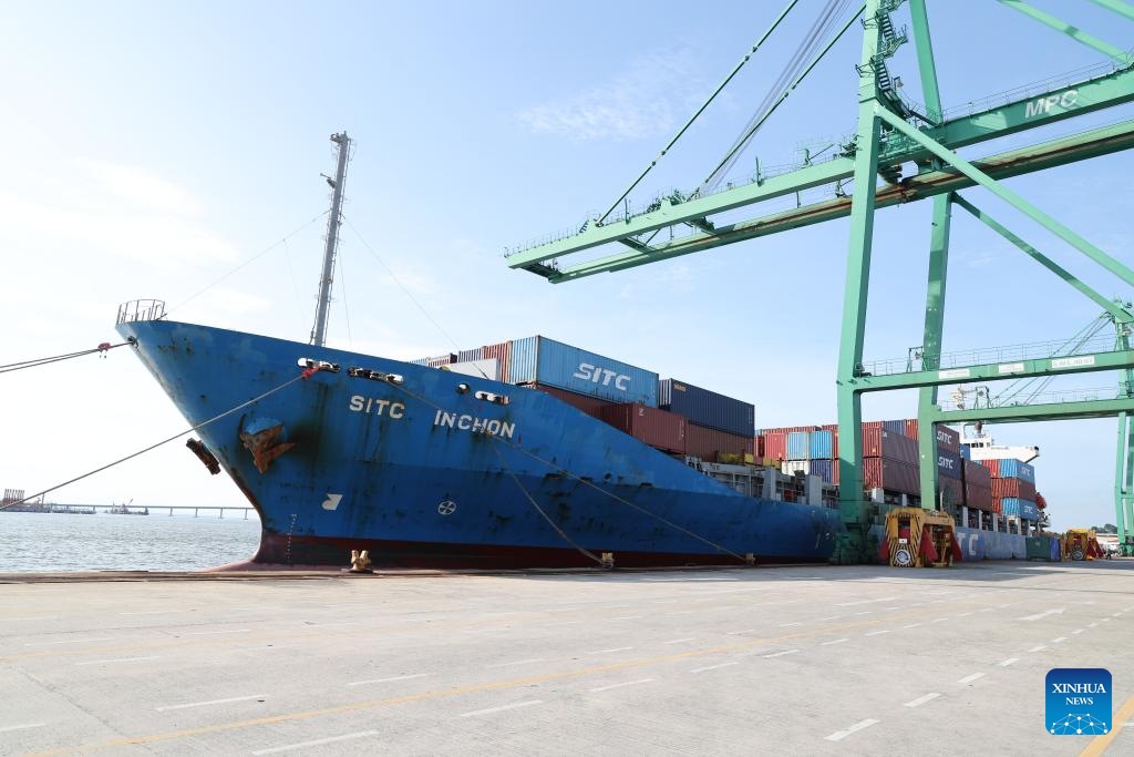 A container vessel operated by Shandong International Transportation Corp. (SITC) docks at Muara Port in Brunei, Dec. 13, 2025. (Xinhua/Li Meng)